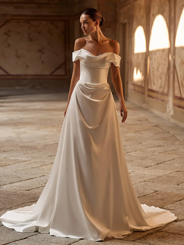 A-Linie: Figurbetontes, eng anliegendes Oberteil und ausgestellter Rock, der Rock ist weiter als bei Fit and Flare. Die Nähte des Kleides sind durchgehend und von keiner Tailliennaht unterbrochen, daher ähnelt der Schnitt des Kleides einem großen A. Schmeichelt fast jeder Figur. In allen Materialien möglich, auch mit Ärmeln, auch mit hochgezogenem Oberteil oder Corsage. Ein Corsagenkleid hat ein Bustier im Oberteil und ist ärmellos, schulterfrei und trägerlos. Die Corsage kann bestickt oder mit Spitze versehen sein und macht ein wunderschönes Dekollete. Das Empirekleid definiert sich durch seine hohe Taillennaht direkt unter der Brust. Der Rest des Kleides fällt meist schmal geschnitten nach unten. In allen Materialien möglich, wird sehr gerne für schwangere oder im Vintage-Style genommen.