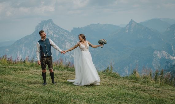 "Dem Wetterbericht zufolge waren für diesen Tag heftige Gewitter und Regen ab Vormittags angesagt... naja, es wurde doch anders, nämlich richtig heiß und das Kleid war dafür einfach PERFEKT! Noch luftiger geht kaum :) wir hatten einen wunderschönen Tag am Berg und sind aus dem Strahlen garnicht mehr rausgekommen. Von der 1. Beratung bis zum Abholtermin hab ich mich bei den Mitarbeiterinnen richtig wohlgefühlt! Ich möchte besonders Susanne hervorheben, die mir mit super viel Einfühlungsvermögen beim Aussuchen und der Anprobe zur Seite stand. Vielen Dank dafür!"